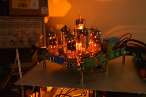 L’amplificateur A100-B est un amplificateur single ended en pure classe A1. En dehors de pentodes utilisées en puits de courant, il est constitué exclusivement de triodes. Les tubes utilisées pour une voie sont :